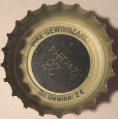 ![]() | Kulmbacher Gold Bier | Kulmbacher Reichelbräu AG, jetzt zur: Kulmbacher Brauerei AG, Kulmbach | Smiley: Auge, Auge, Blüte (rechts), Mund (Bogen, grinsend) | 3734 |