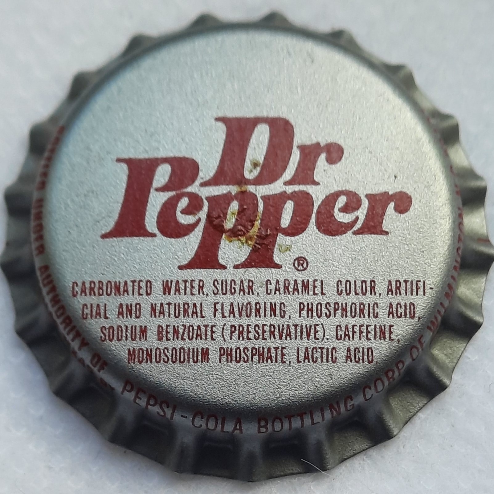 ![]() | Dr Pepper ® Carbonated Water, Sugar, Caramel Color ... [Soft Drink] | Pepsi-Cola Bottling Corp., Wilmington, North Carolina, United Staes of America | Issued in the 1970s; ... Pepsi-Cola Bottling Corp. of Wilmington, N.C.28401 | 33337 |