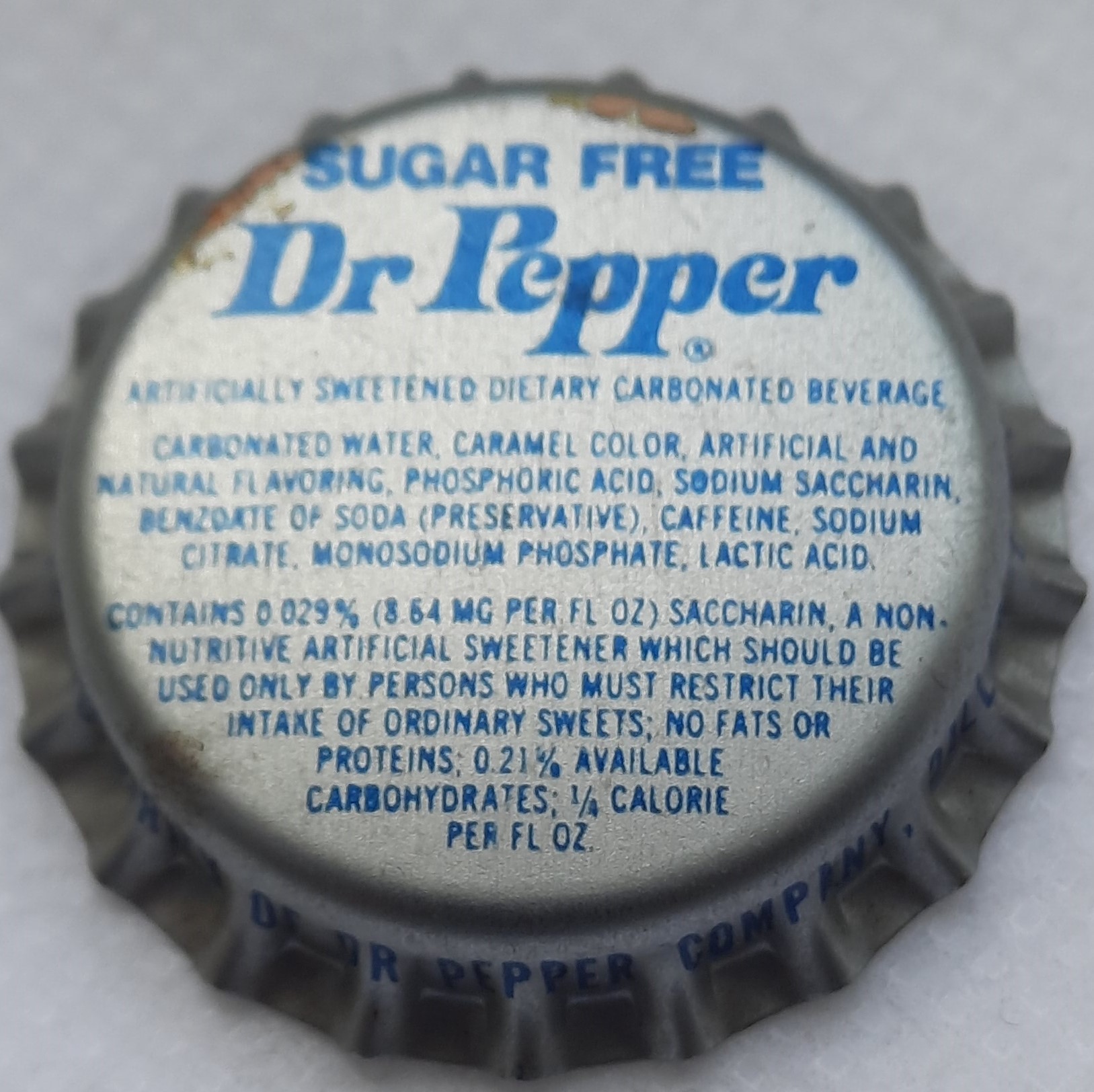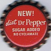 ![]() | Dr Pepper Sugar Free Artificially Sweetened Dietary Carbonated Beverage [Soft Drink] | Dr. Pepper Company, Dallas, Texas, United States of America | Issued in the 1970s; Bottled under Authority of the Dr. Pepper Company Dallas, Texas 75222 | 33349 |