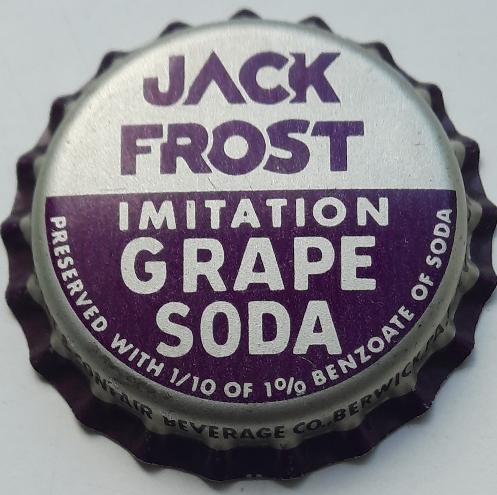 ![]() | Jack Frost Imitation Grape Soda Preserved with 1/10 of 1% Benzoate of Soda [Limonade] | Jack Frost Beverages, Elmira, New York, United States of America | ![]() | 33205 |