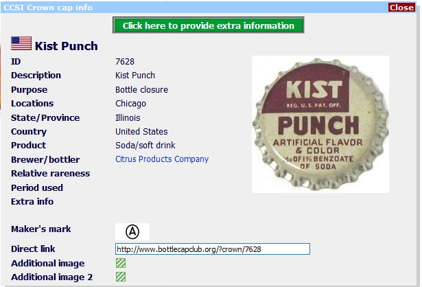 ![]() | Kist Punch … [Soft Drink] | Citrus Products Company, Chicago, Illinois, United States of America | ![]() | 28734 |