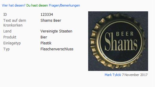 ![]() | Saint Arnold Patron Saint Of Brewers [Beer] | Saint Arnold Brewing Company, Houston, Texas, United States of America | Ausgegeben: 2011 oder früher; More corrugations than 21.Inside: Sorry, try again! | 14539 |