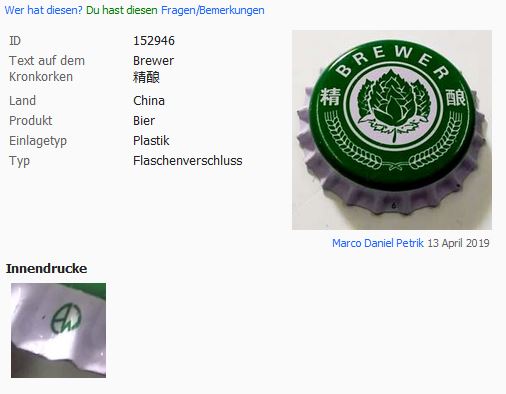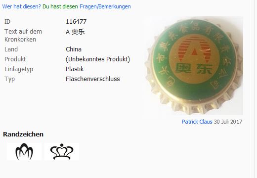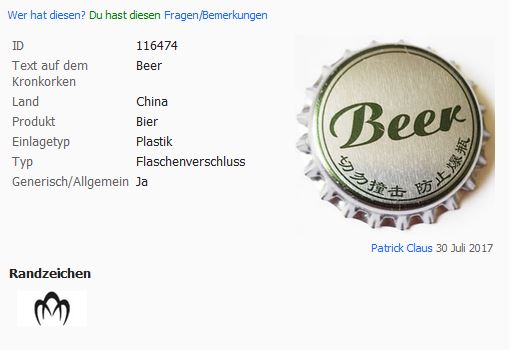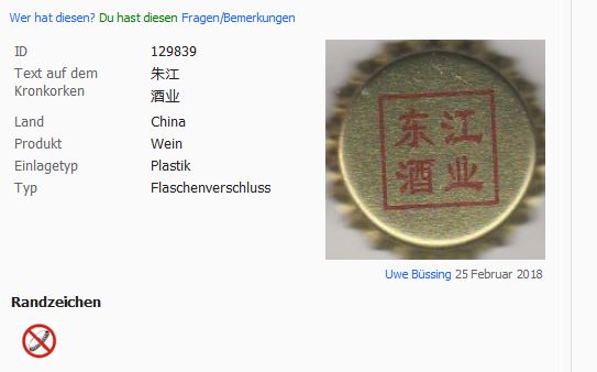 Es wurden 261 Kronkorken für die Suche nach Land: 'China' gefunden!