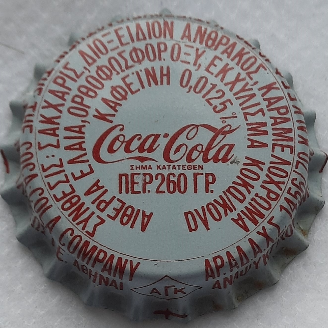 ![]() | Coca-Cola Περ. 260 Γρ [Limonade] | Coca-Cola Hellenic Bottling Company, Heraklion, Crete, Griechenland | Ausgegeben: 1970er Jahre; Greek writing on the edge | 33357 |