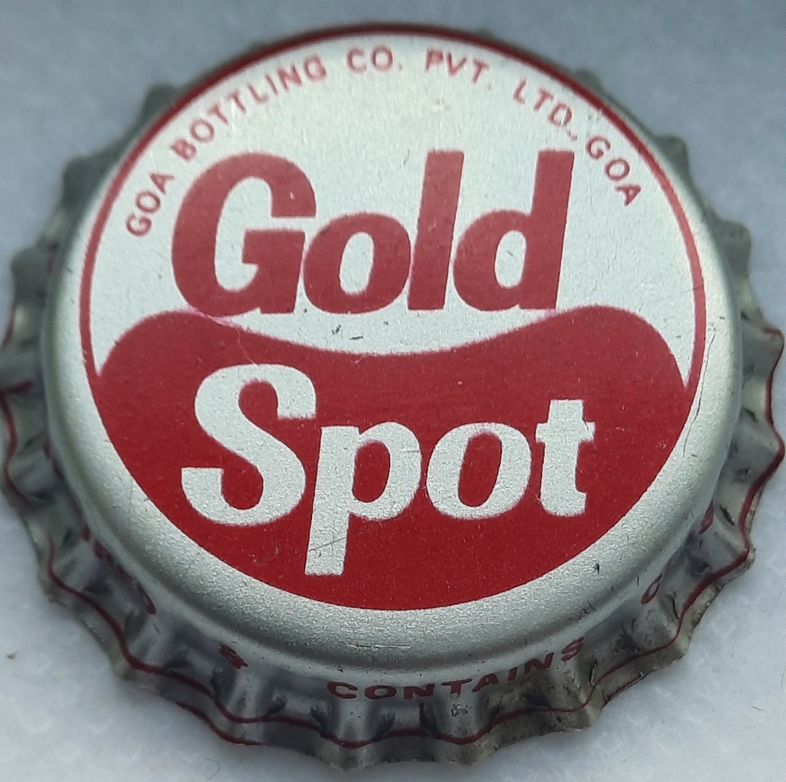 ![]() | Gold Spot Goa Bottling Co. Pvt. Ltd. Goa [Limonade] | Goa Bottling Co. Pvt. Ltd. Goa, Goa, Indien | Ausgegeben: etwa 1978; Arttificially Colored & Contains Class II Preservative | 33327 |