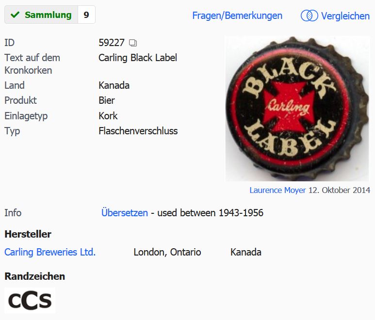 ![]() | Black Label Beer | Carling Breweries Ltd., London, Ontario & Montreal, QuebecK, anada | ![]() | 6847 |